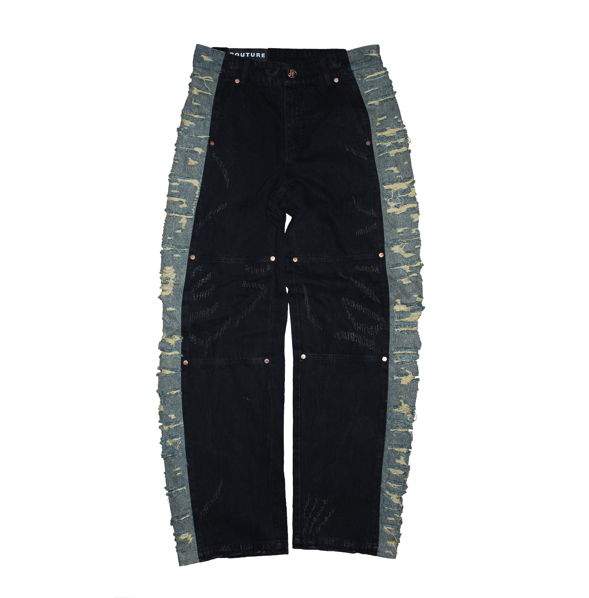 Constructed from heavyweight cotton denim and treated with a stone and acid wash for rich texture and a lived-in feel. The side stripe features hand distressing layered over raw denim for added depth and contrast. Designed with custom branded hardware and a sewn-in waistband tag. Finished with a wide leg and extended inseam for a natural stacked fit.